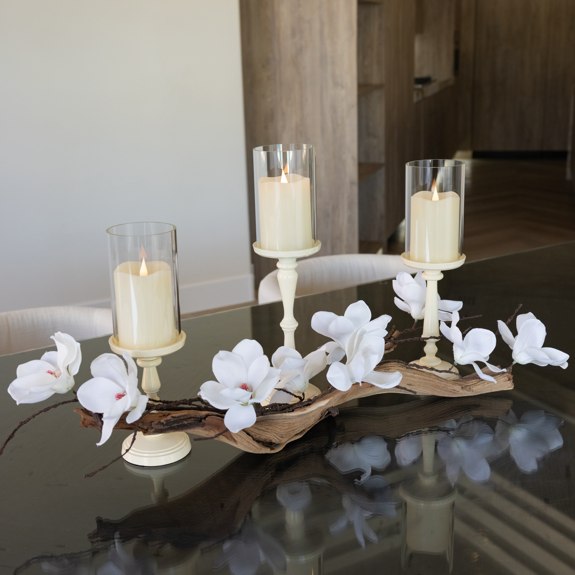 "The centerpiece was stunning! The driftwood, magnolias, and candles added an elegant touch to my dinner party. My guests were amazed, and it made the table look so sophisticated. Perfect for any special occasion!"