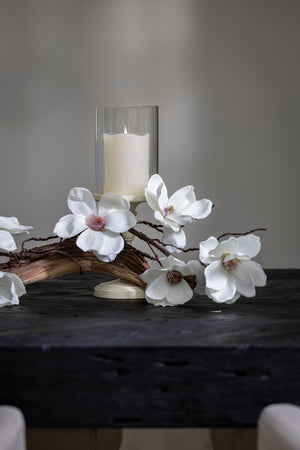 "The centerpiece was stunning! The driftwood, magnolias, and candles added an elegant touch to my dinner party. My guests were amazed, and it made the table look so sophisticated. Perfect for any special occasion!"