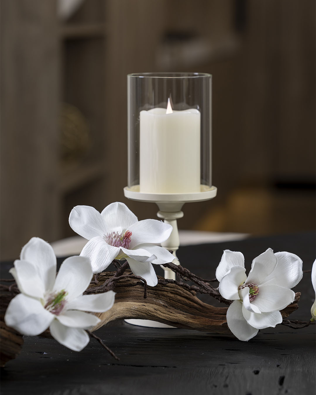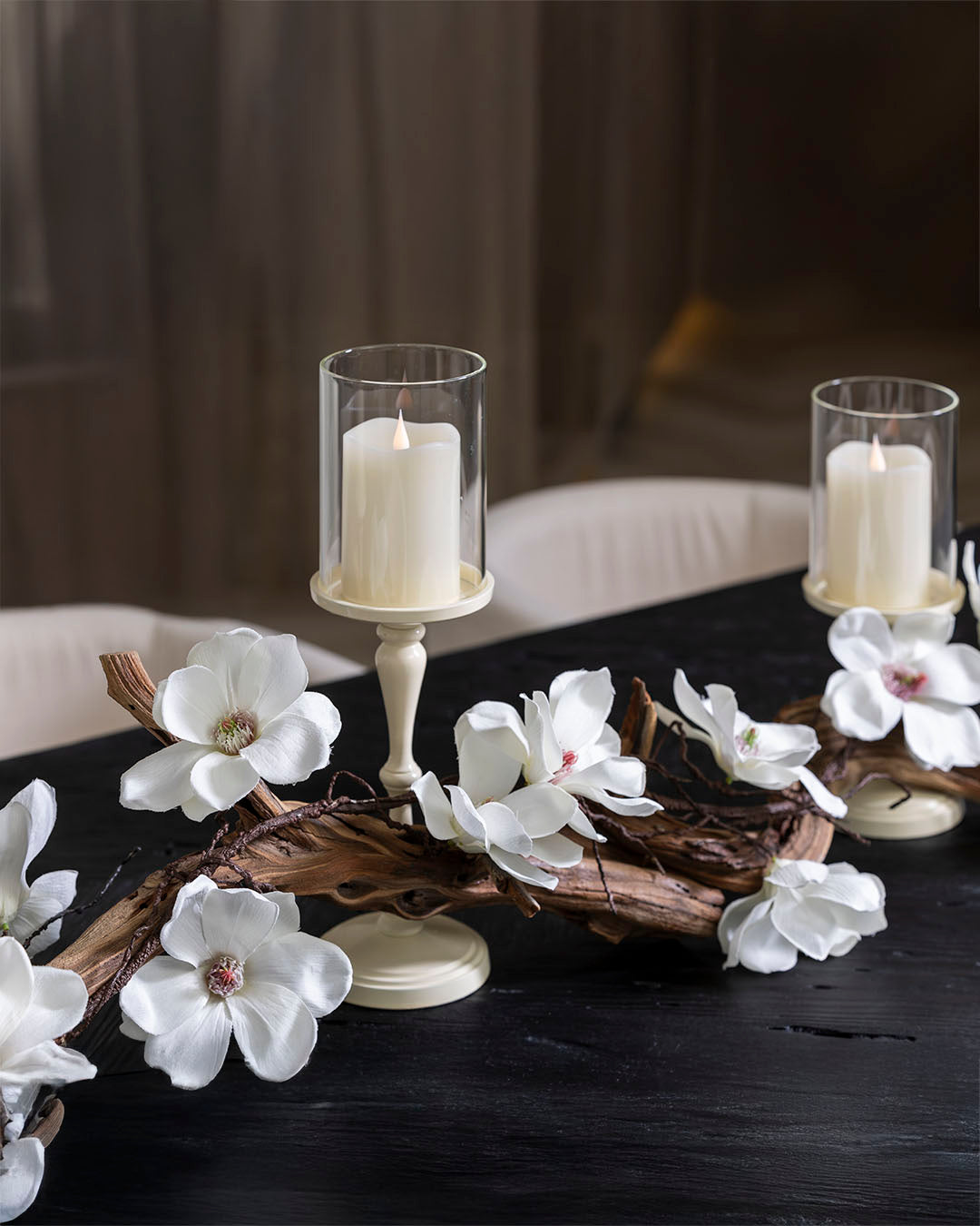 "Perfect for our anniversary dinner! The driftwood and magnolias added a rustic charm, while the candles made it feel romantic and luxurious. My guests were impressed!"