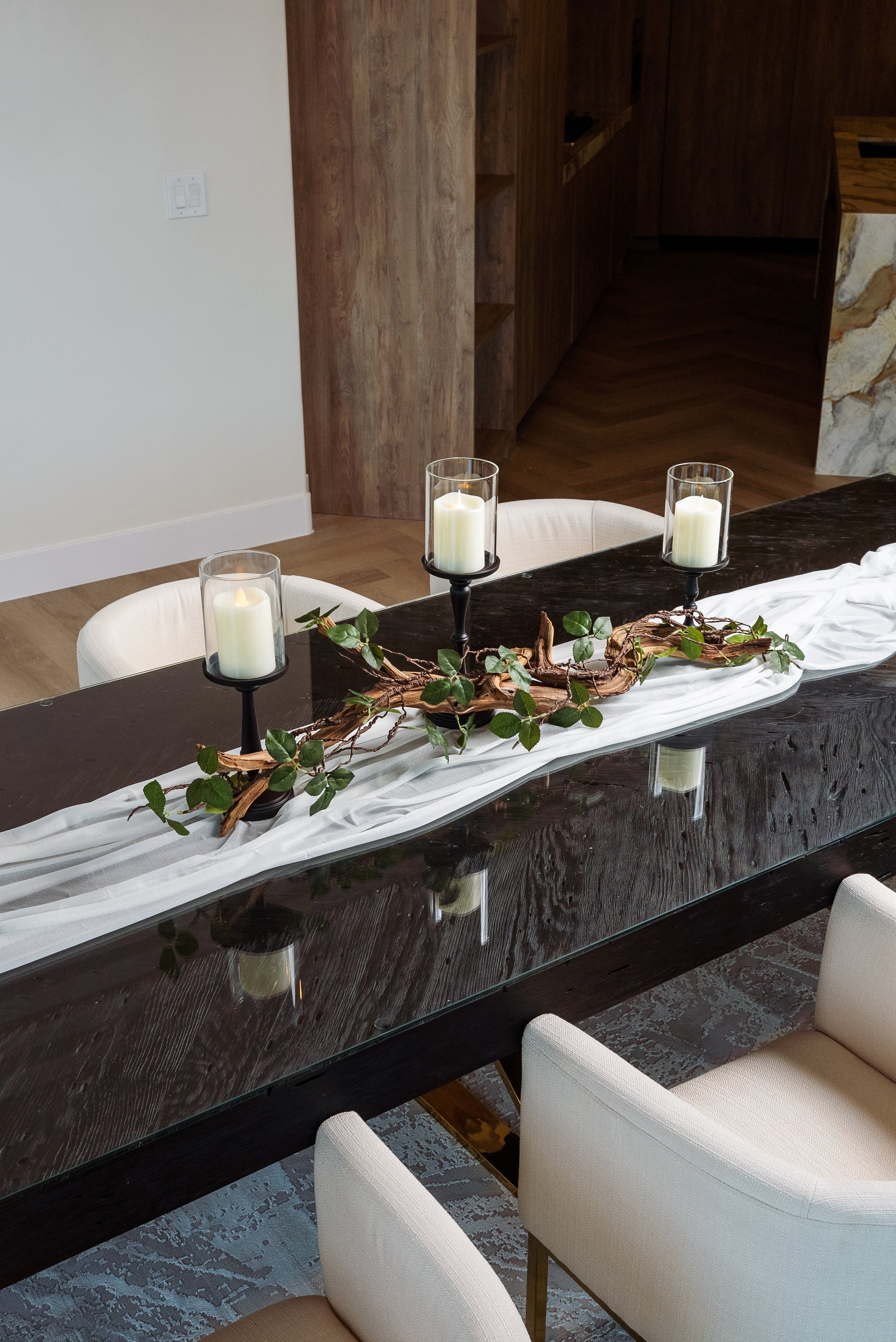 "The centerpiece was stunning! The driftwood, magnolias, and candles added an elegant touch to my dinner party. My guests were amazed, and it made the table look so sophisticated. Perfect for any special occasion!"